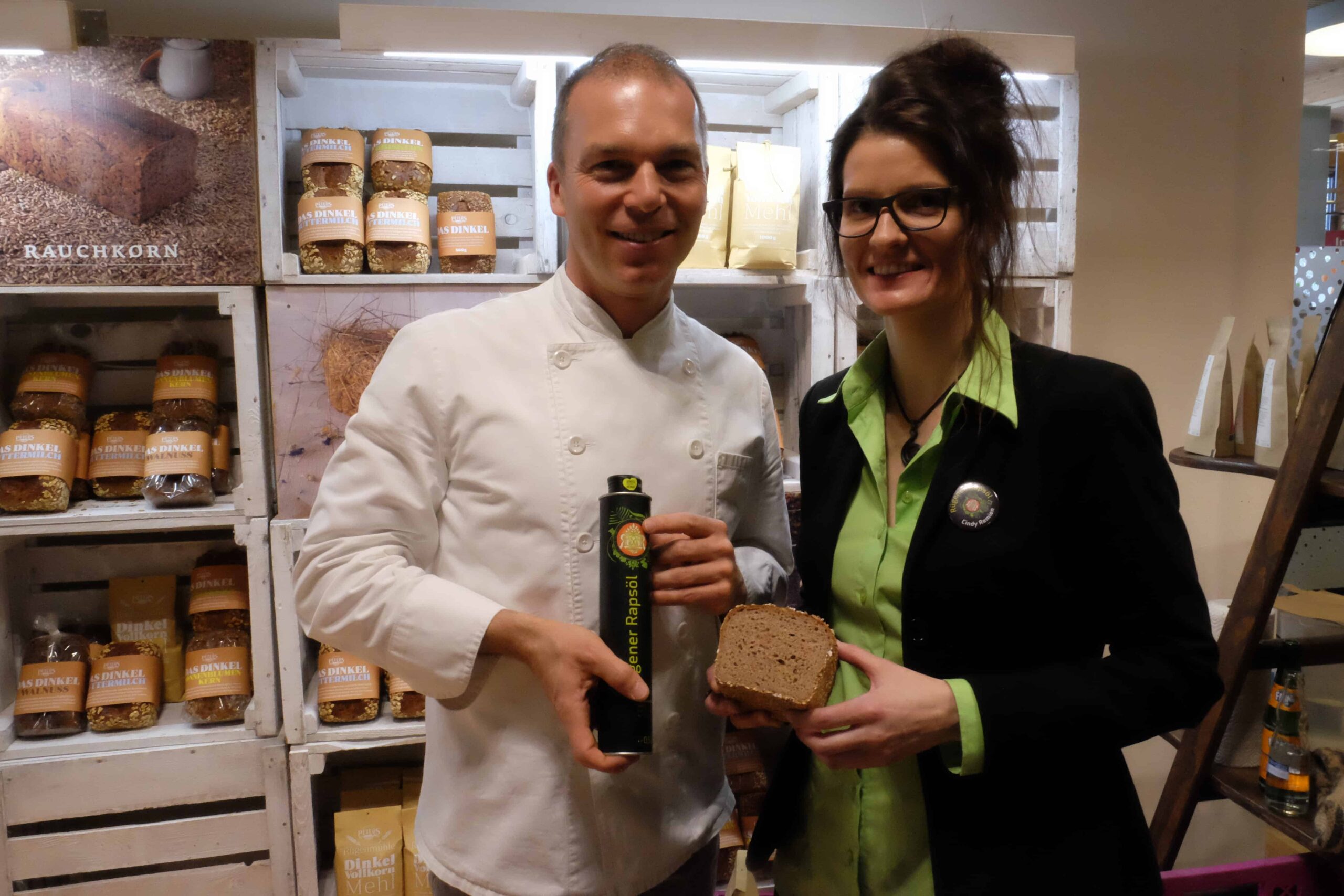 Geschäftspartner Nils Peters von der Bäckerei Peters und Cindy Remien vom Rügener Landhandel